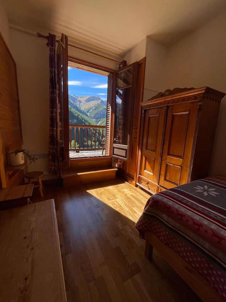 À 2 040 mètres d’altitude dans le plus haut village habité d’Europe, La Bianca est un appartement 2 pièces de 36 m² niché dans la résidence Beauregard, à Saint-Véran. Idéalement situé face à l’épicerie du village, il accueille jusqu’à 4 personnes dans un cadre calme, avec un grand balcon exposé plein sud offrant une vue dégagée sur les sommets du Parc naturel régional du Queyras.